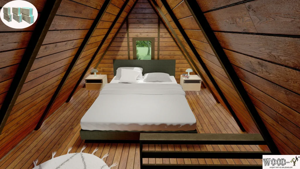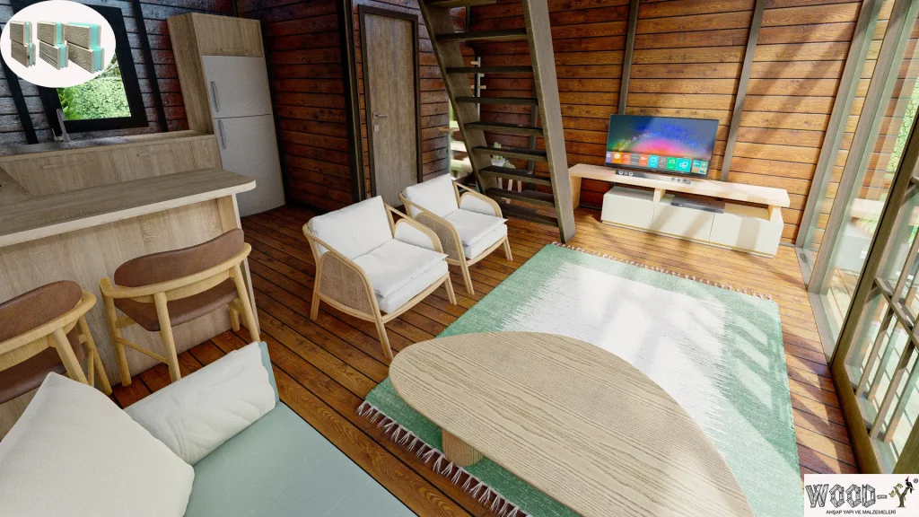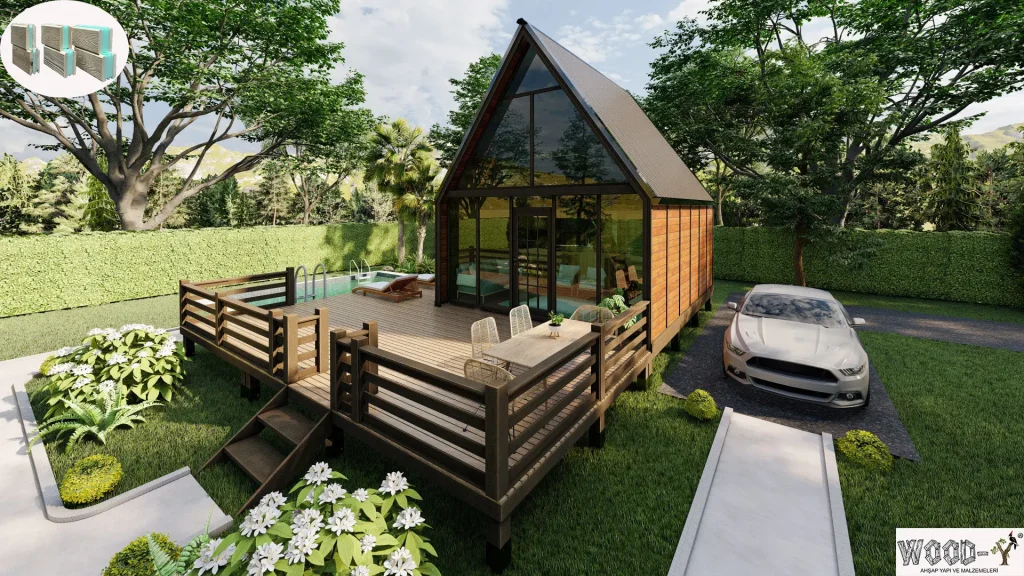 *The veranda is optional, allowing you to customize it according to your needs. With its modern and practical design, this bungalow offers both a natural living experience and comfort. Contact us today to find the wooden house model that best suits your needs!