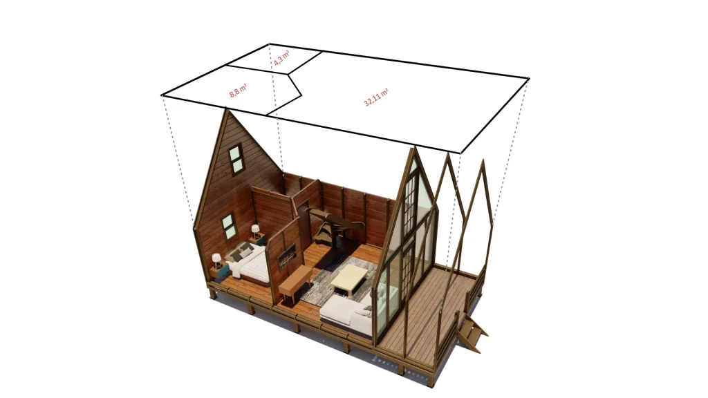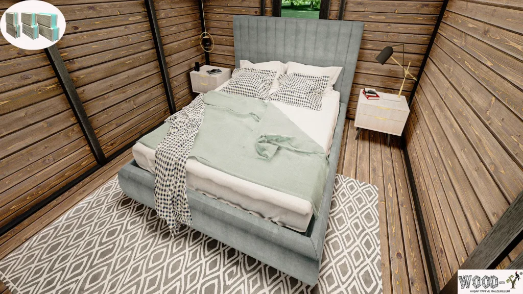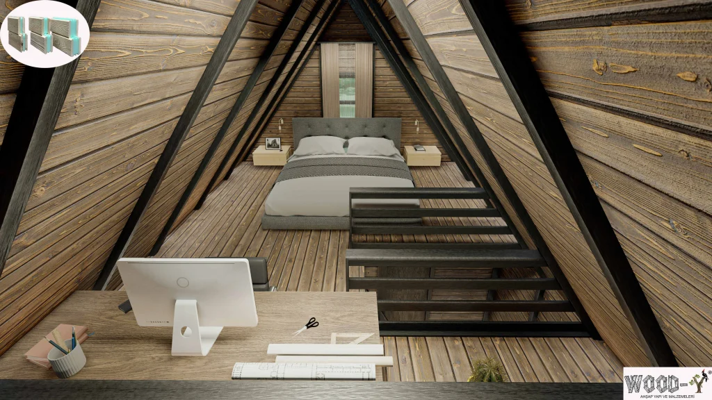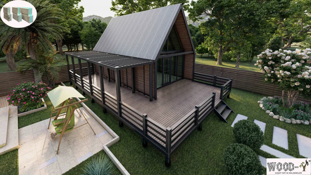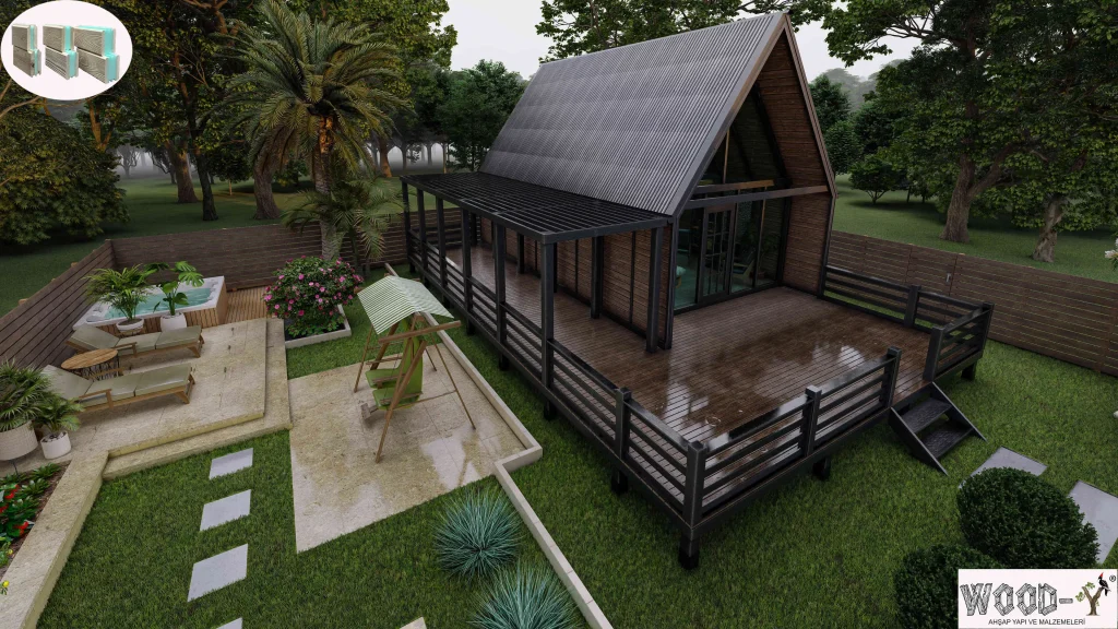 *The veranda is optional, allowing you to customize it according to your needs. With its modern and practical design, this bungalow offers both a natural living experience and comfort. Contact us today to find the wooden house model that best suits your needs!