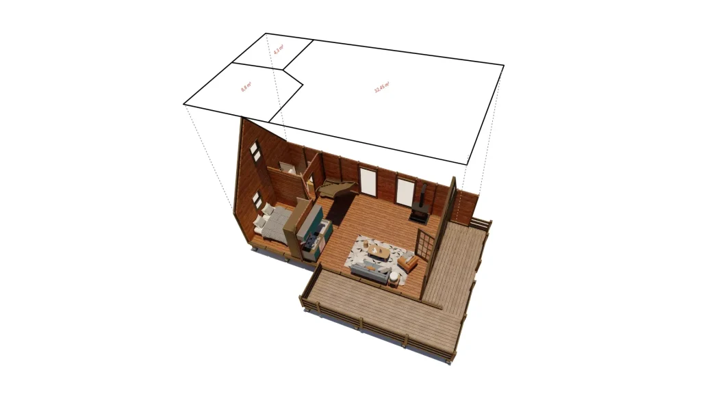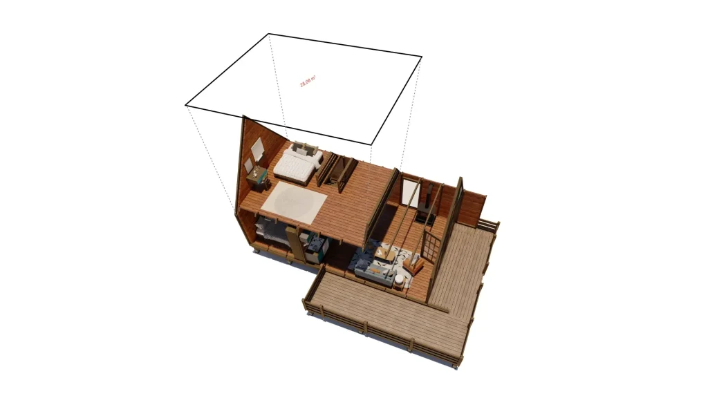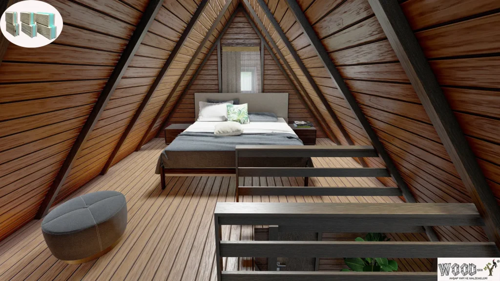 *The veranda is optional, allowing you to customize it according to your needs. With its modern and practical design, this bungalow offers both a natural living experience and comfort. Contact us today to find the wooden house model that best suits your needs!