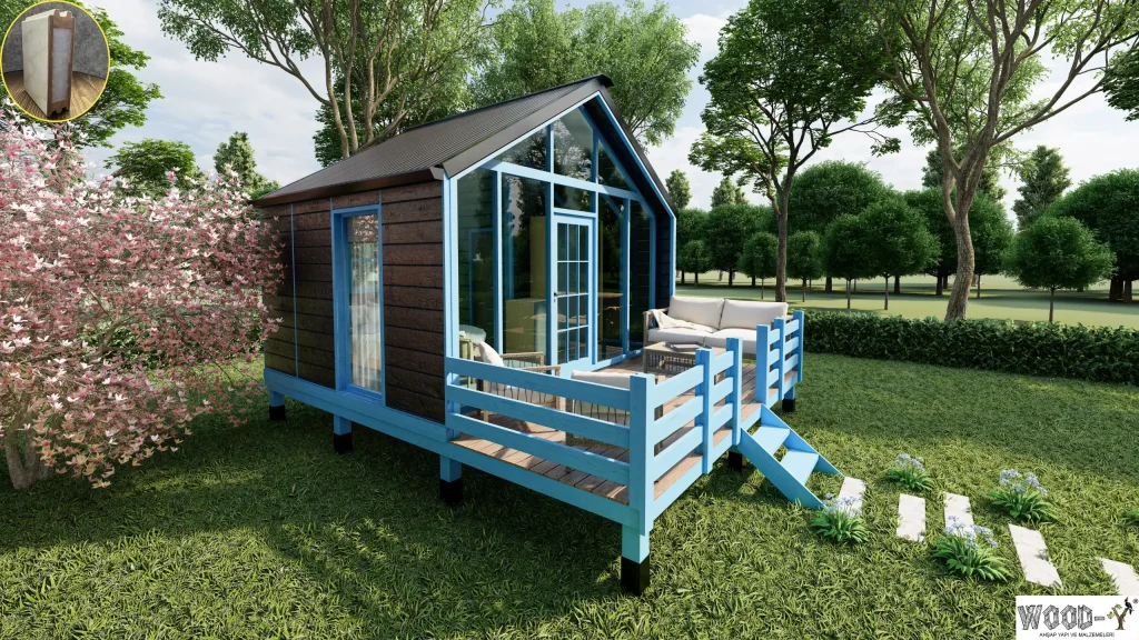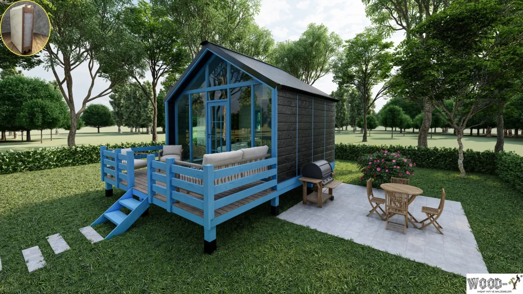 *The veranda is optional, allowing you to customize it according to your needs. With its modern and practical design, this bungalow offers both natural living and comfort. Contact us now to find the most suitable wooden house model for you!