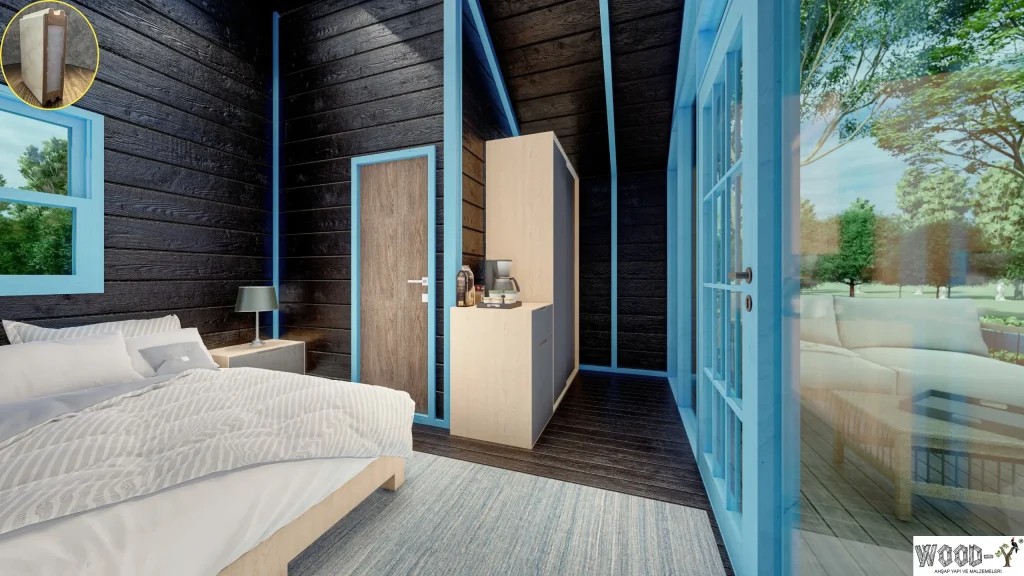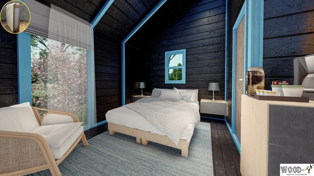 Discover the perfect combination of sustainability, durability, and modern design with our single-story wooden house. With a total height of approximately 4 meters (13 feet) and an interior area of 20.26 m², this home is an ideal choice for small families, glamping projects, or boutique hotels.