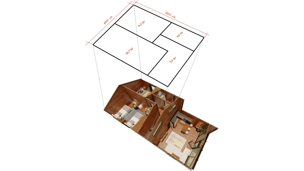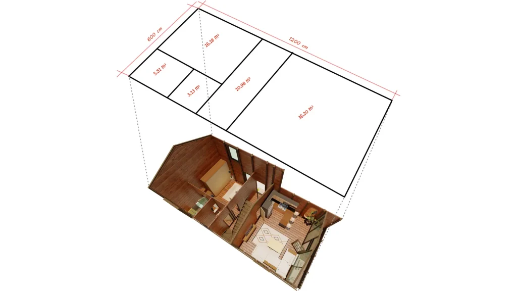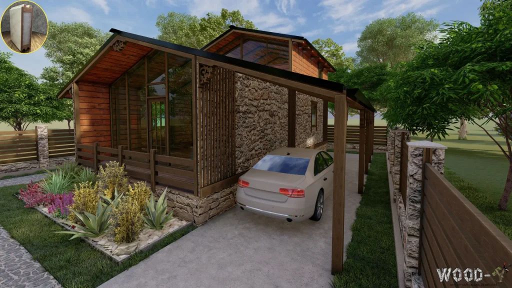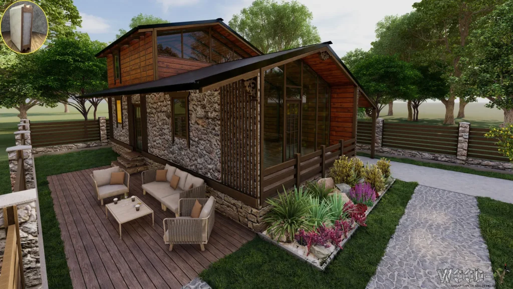 *The veranda is optional, allowing you to customize it according to your needs. With its modern and practical design, this bungalow offers both a natural living experience and comfort. Contact us today to find the wooden house model that best suits your needs!