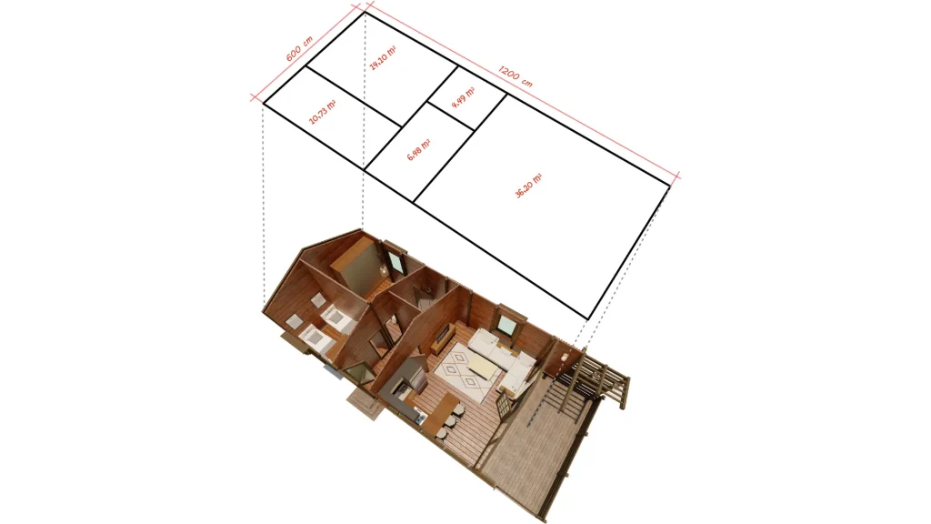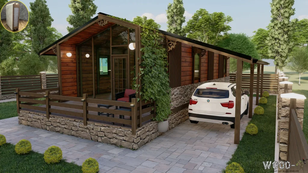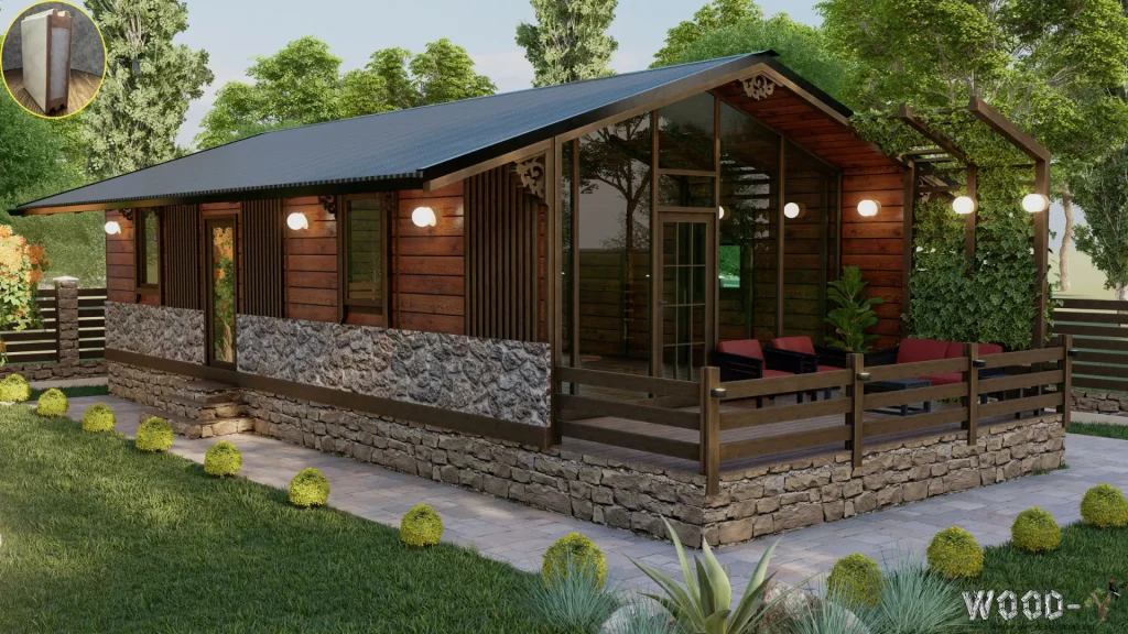 *The veranda is optional, allowing you to customize it according to your needs. With its modern and practical design, this bungalow offers both a natural living experience and comfort. Contact us today to find the wooden house model that best suits your needs!