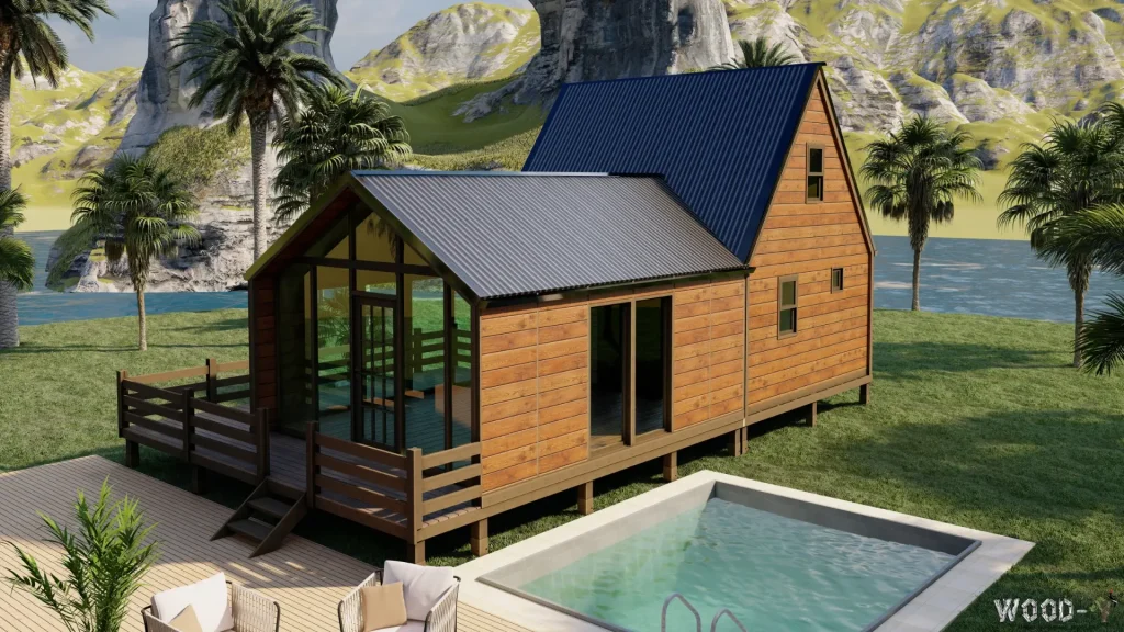 ✔ Hızlı İnşaat – 60,46 m² iç alana sahip bu ahşap ev, 3-4 kişilik uzman bir ekip tarafından sadece 1,5 hafta içinde tamamlanabilir.