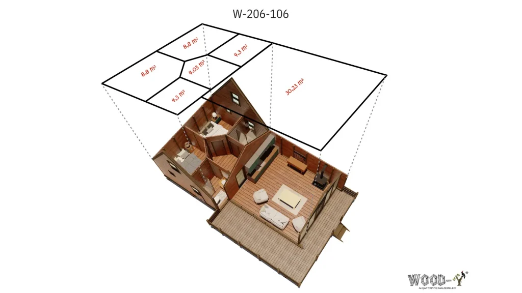 *The veranda is optional, allowing you to customize it according to your needs. With its modern and practical design, this bungalow offers both a natural living experience and comfort. Contact us today to find the wooden house model that best suits your needs!