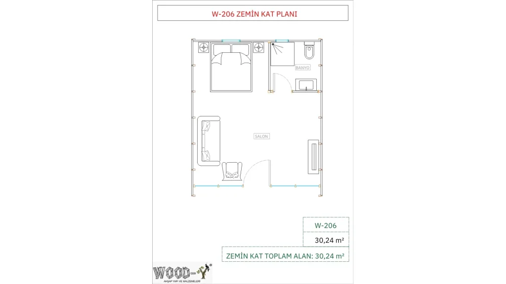 ✔ Hızlı İnşaat – 30,24 m² iç alana sahip bu ahşap ev, 3-4 kişilik uzman bir ekip tarafından sadece 1,5 hafta içinde tamamlanabilir.