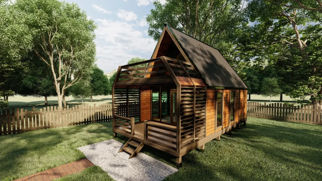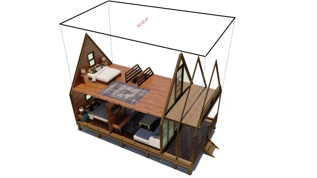 *The veranda is optional, allowing you to customize it according to your needs. With its modern and practical design, this bungalow offers both a natural living experience and comfort. Contact us today to find the wooden house model that best suits your needs!